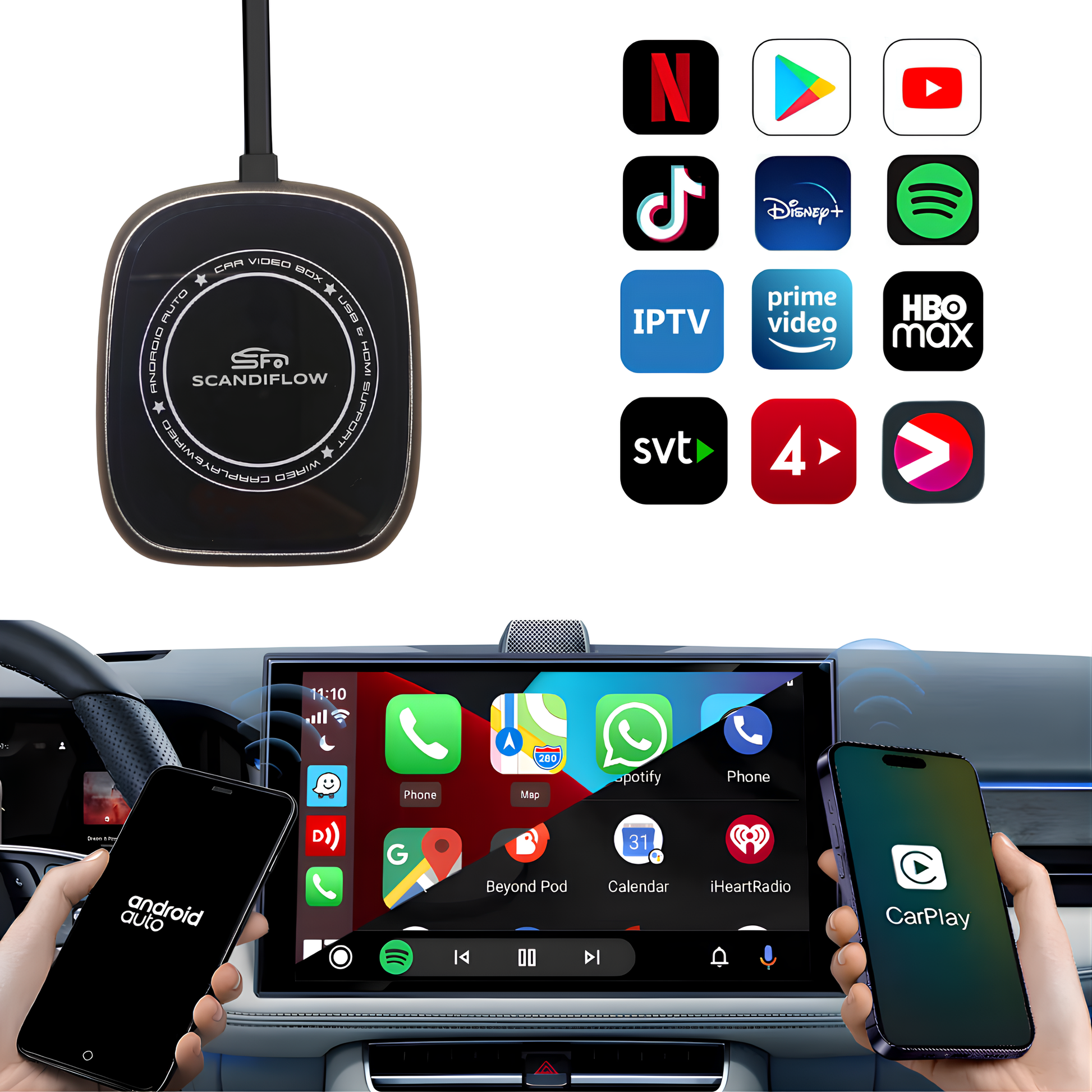 Ja. ScandiFlow kör Android 12, vilket gör att du kan streama appar direkt i bilen via WiFi eller mobil hotspot.
